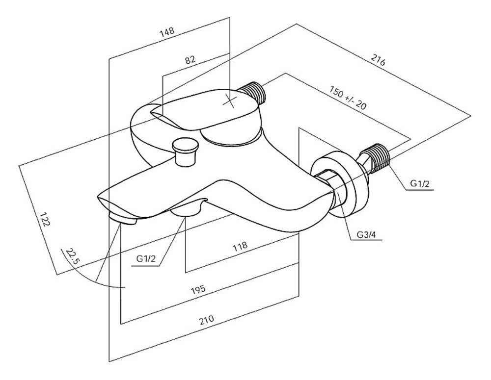 Смеситель Am.Pm Bliss L F5310064 для ванны и душа