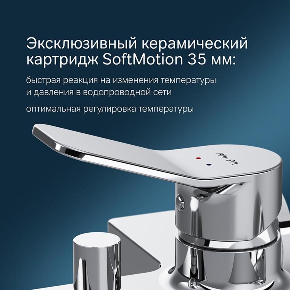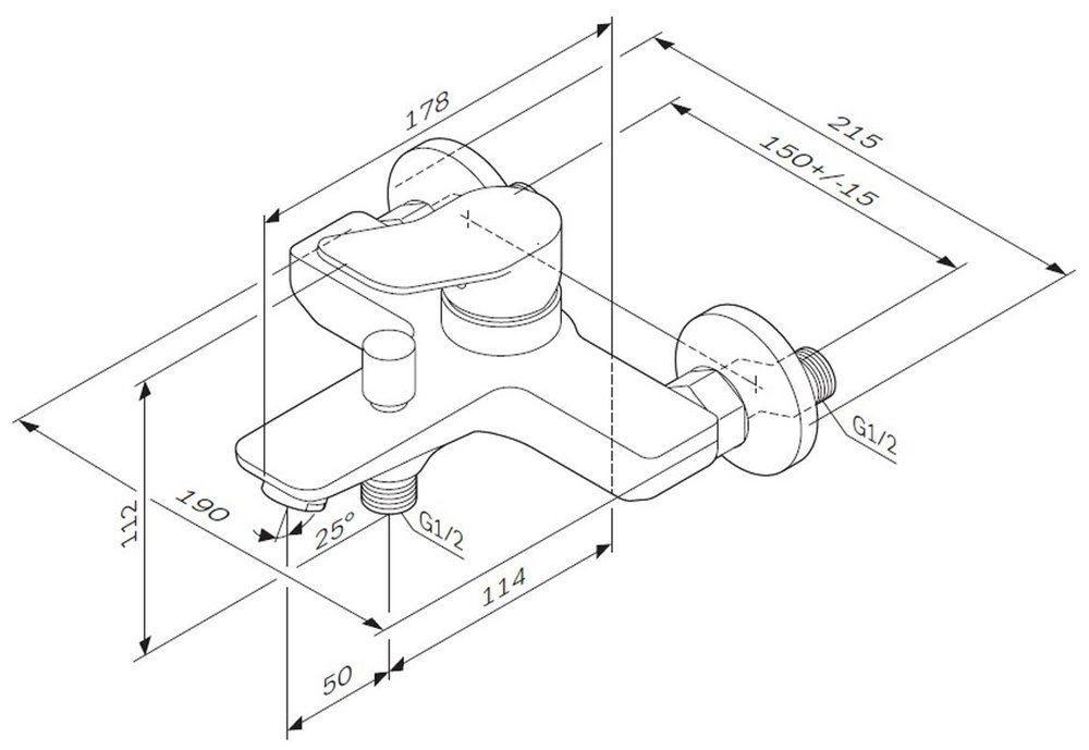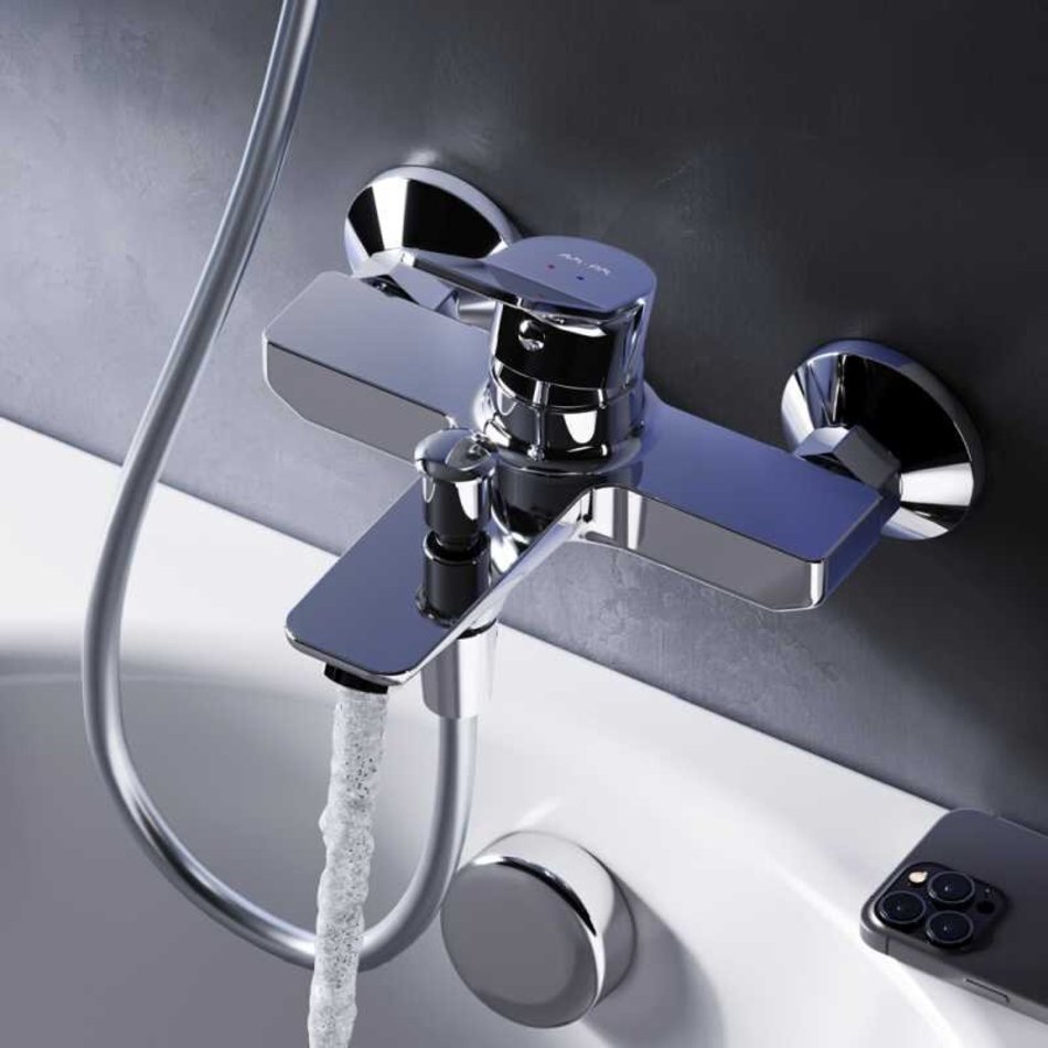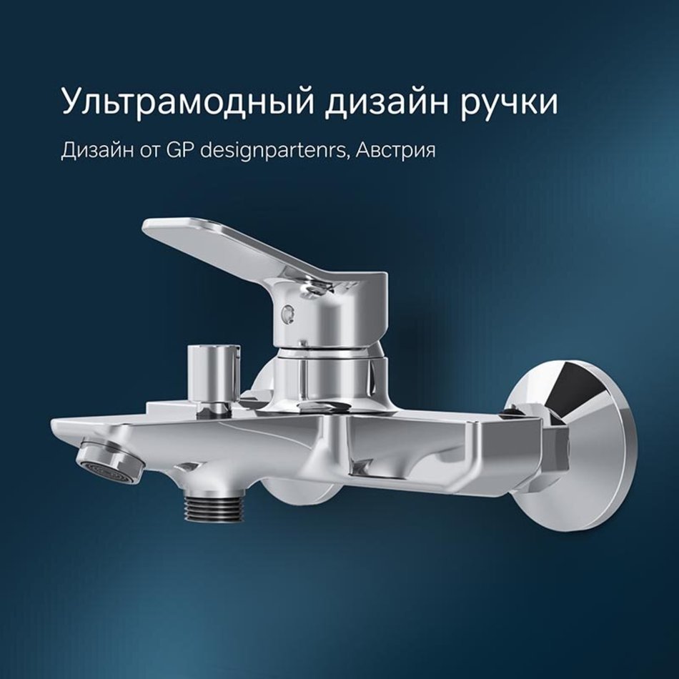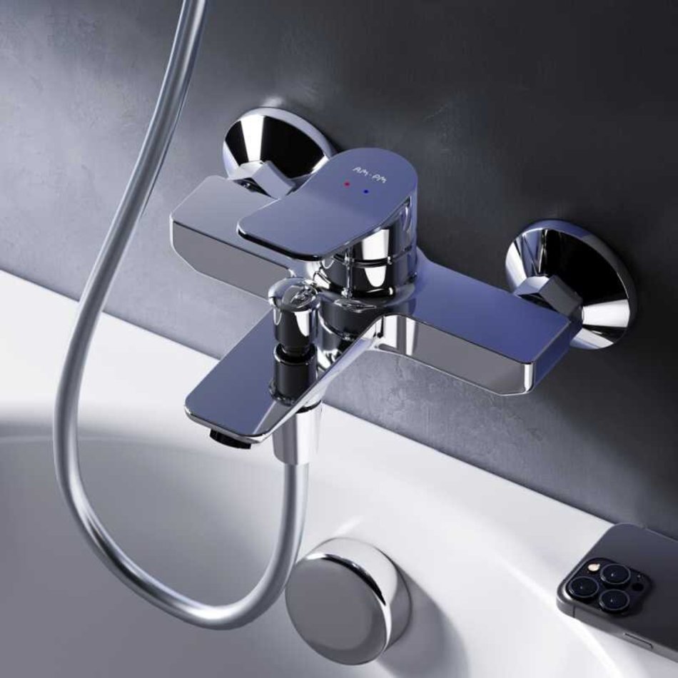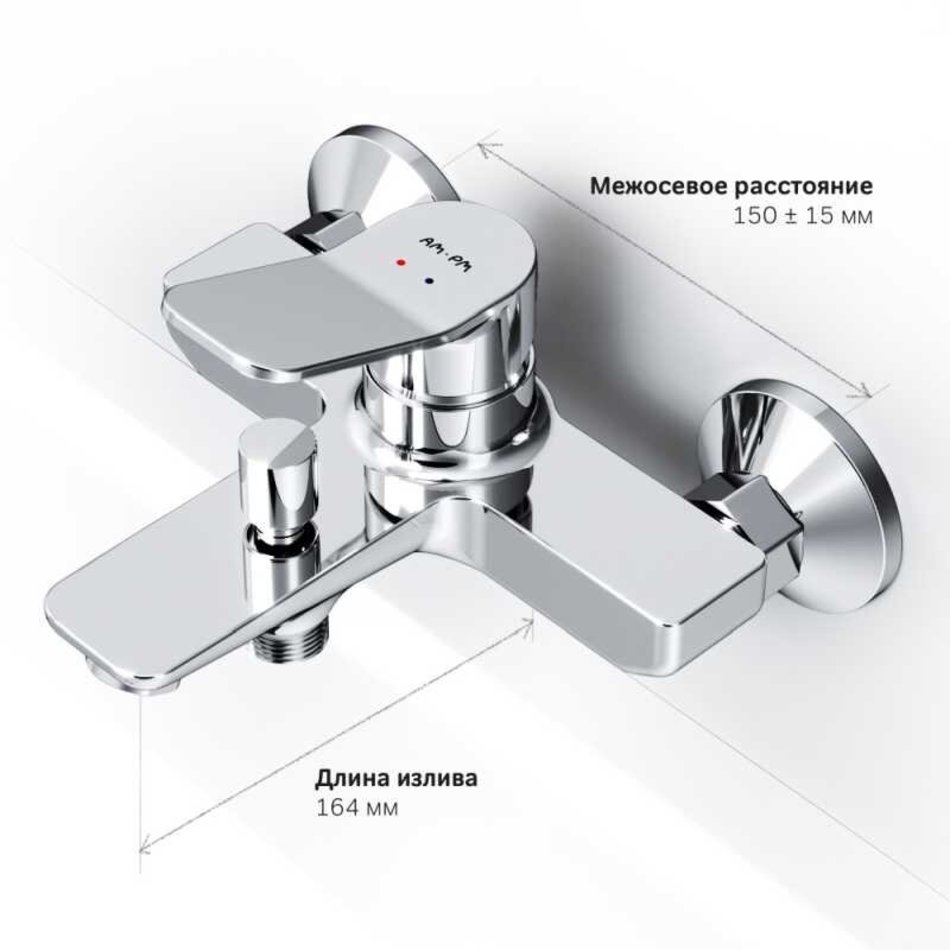 Ультрамодный дизайн ручки придаёт смесителю дополнительную динамику и делает управление потоком воды удивительно лёгким. Излив 164 мм. Настенная установка, AM.PM Soft Motion 35 мм керамический картридж, автоматический переключатель ванна/душ с возможностью механической фиксации при низком давлении воды, выход для душа 1/2“, аэратор, S-образные эксцентрики, металлические декоративные чашки, межосевой размер подключения 150 мм ± 15 мм.