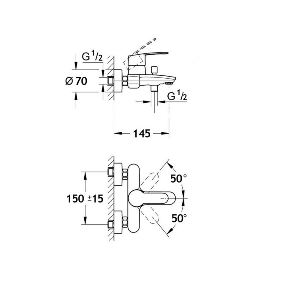 Смеситель для ванны и душаAquame Prato AQMP6122, хром, поверхность глянцевая