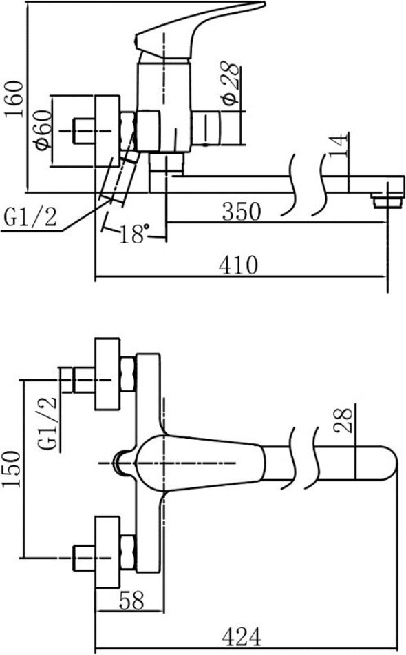 Смеситель Aquanet Static AF330-21C для ванны и душа, хром (237445)