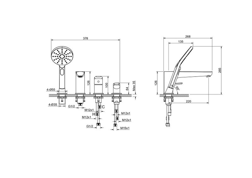 - С верхним душем
