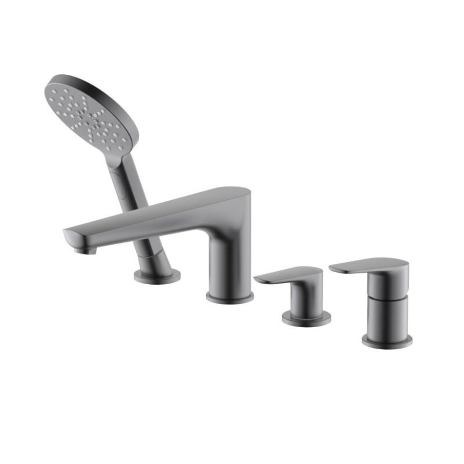 Смеситель Aquatek Бетта AQ1148BGM, на борт ванны, с душевым гарнитуром, черный хром шлифованный