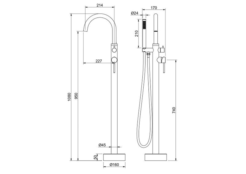 Комплектация: смеситель, ручная лейка, шланг для лейки 150 см, держатель для ручной лейки, дивертор (переключатель потоков), декоративная накладка на пол, крепление для смесителя.