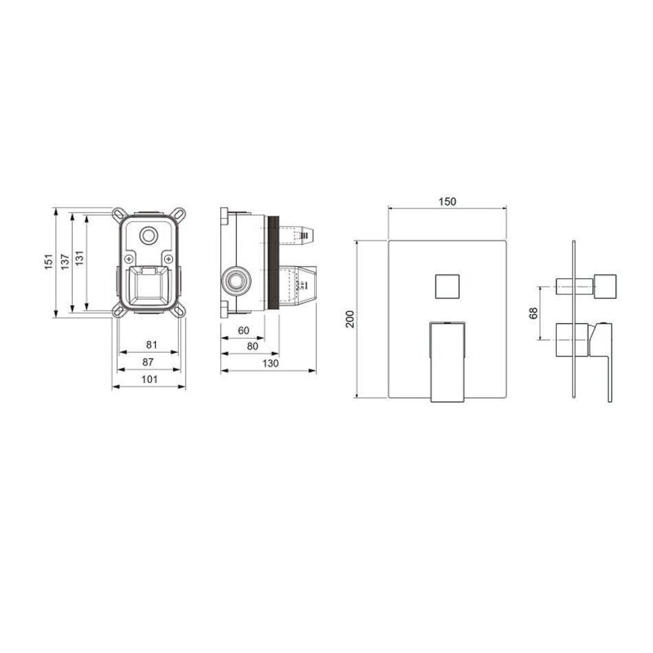 - Смеситель из латуни скрытого монтажа с установочной коробкой