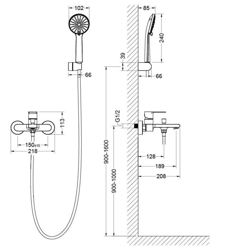 - Душевой гарнитур (лейка, шланг, настенный держатель для лейки)