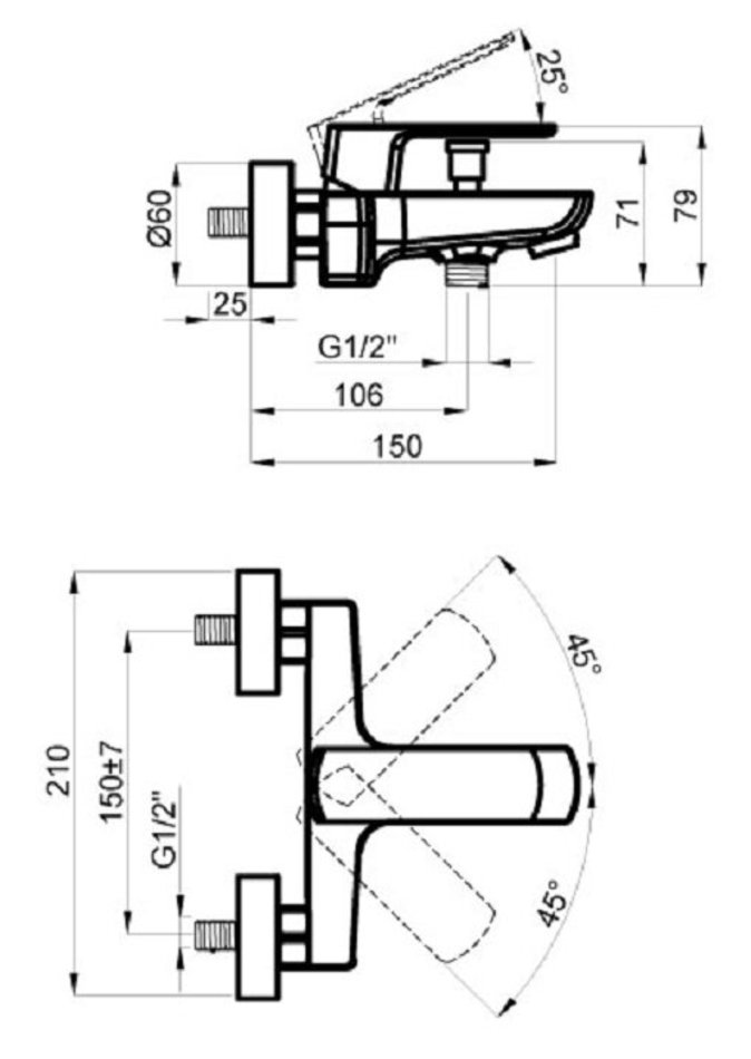 Смеситель Azario Atri AZ-15960501 для ванны, с коротким изливом, хром