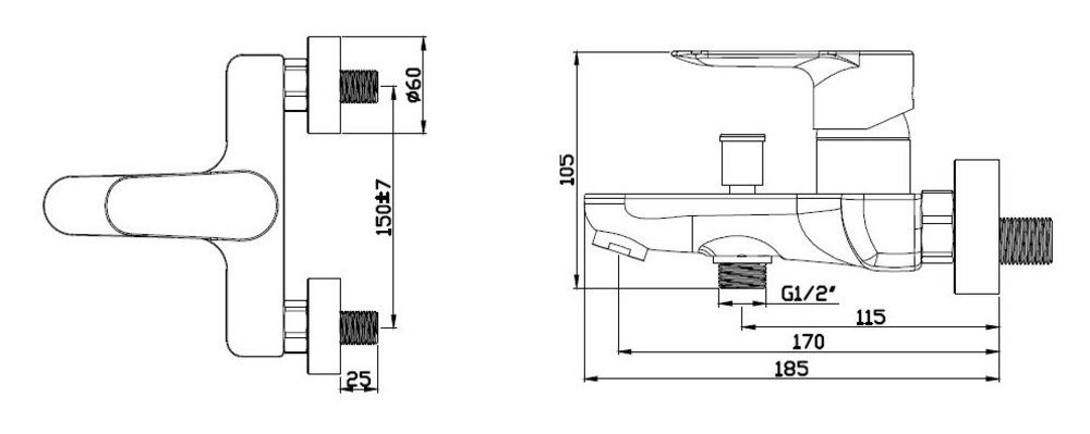 Смеситель Azario Leya AZ-15920501 для ванны, с коротким изливом, хром