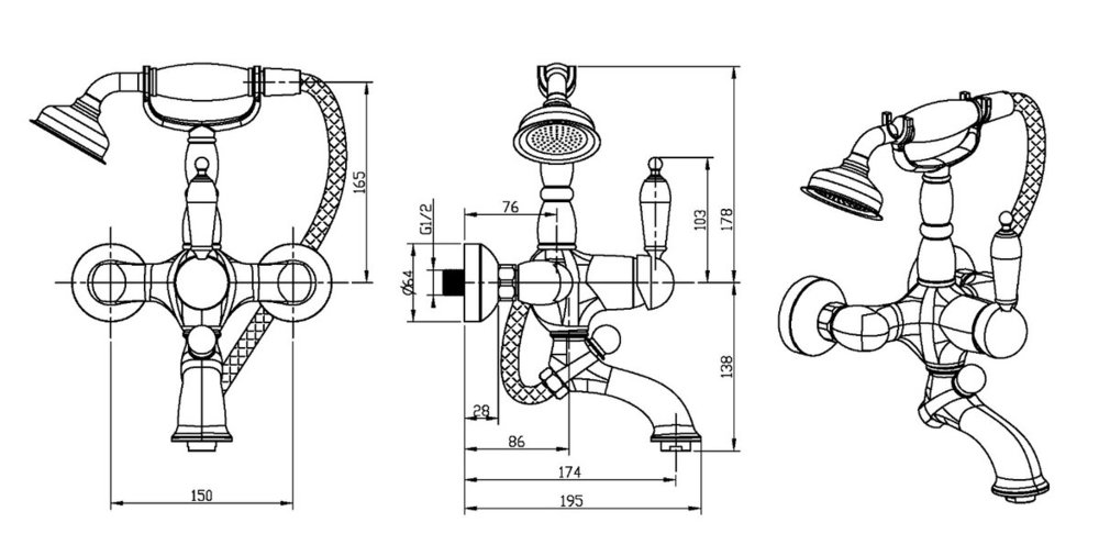 - Смеситель для ванны с душевым гарнитуром