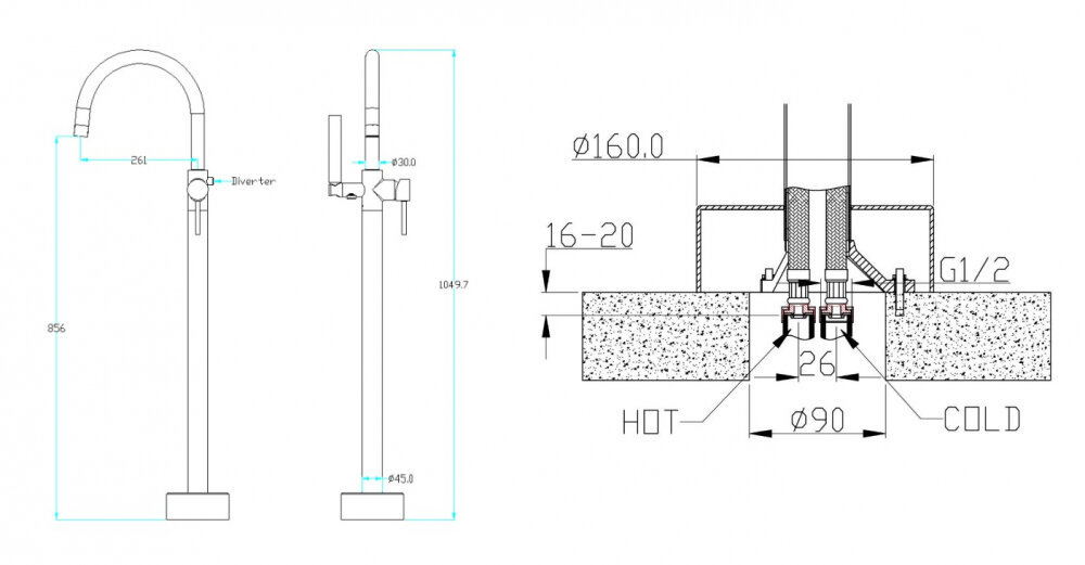 Смеситель Boheme Brillante для ванны напольный, хром, 469-CR (229)
