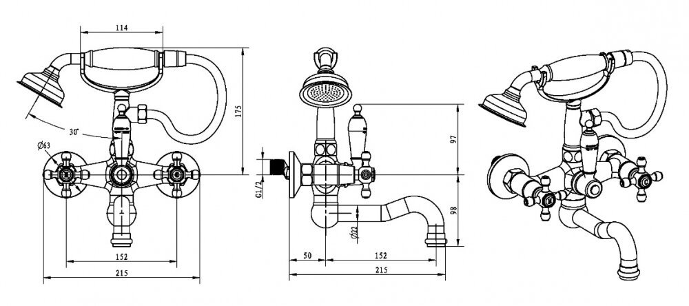 Смеситель Boheme Crystal 293-CRST для ванны, с душевым гарнитуром, золото