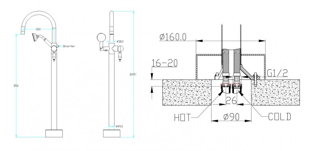 Смеситель Boheme Imperiale 289 для ванны напольный, золото