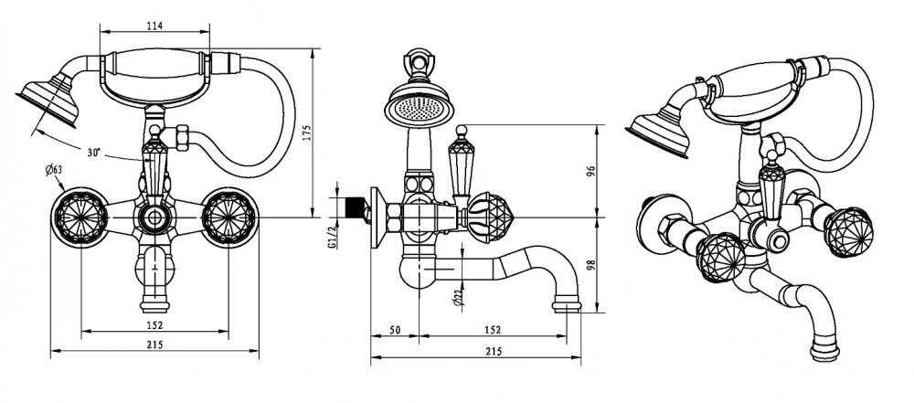 - Смеситель для ванны с душевым гарнитуром