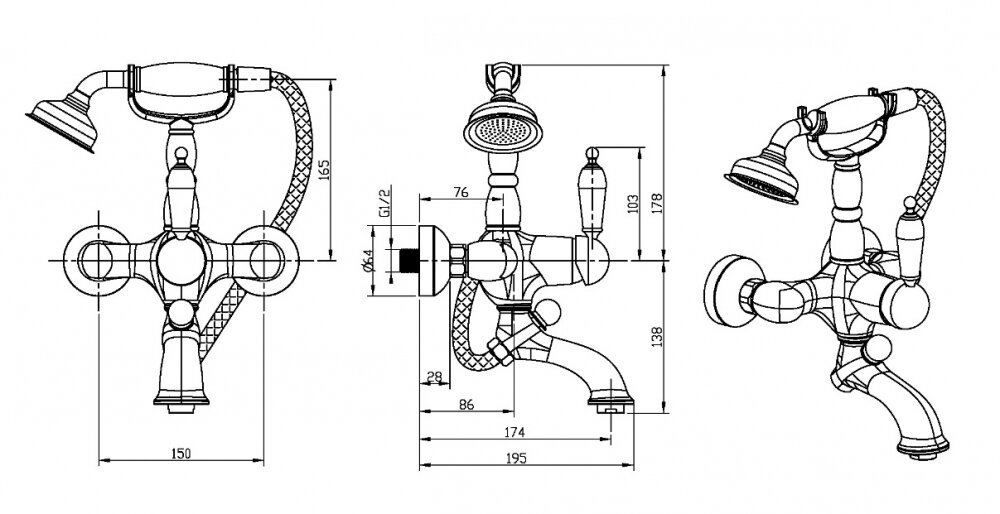 Смеситель Boheme Medici 303 Ripresa для ванны, с душевым гарнитуром, бронза