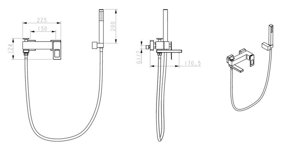 Смеситель Boheme Q для ванны, с душевым гарнитуром, золото, красный, 143-GR.2