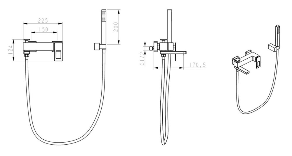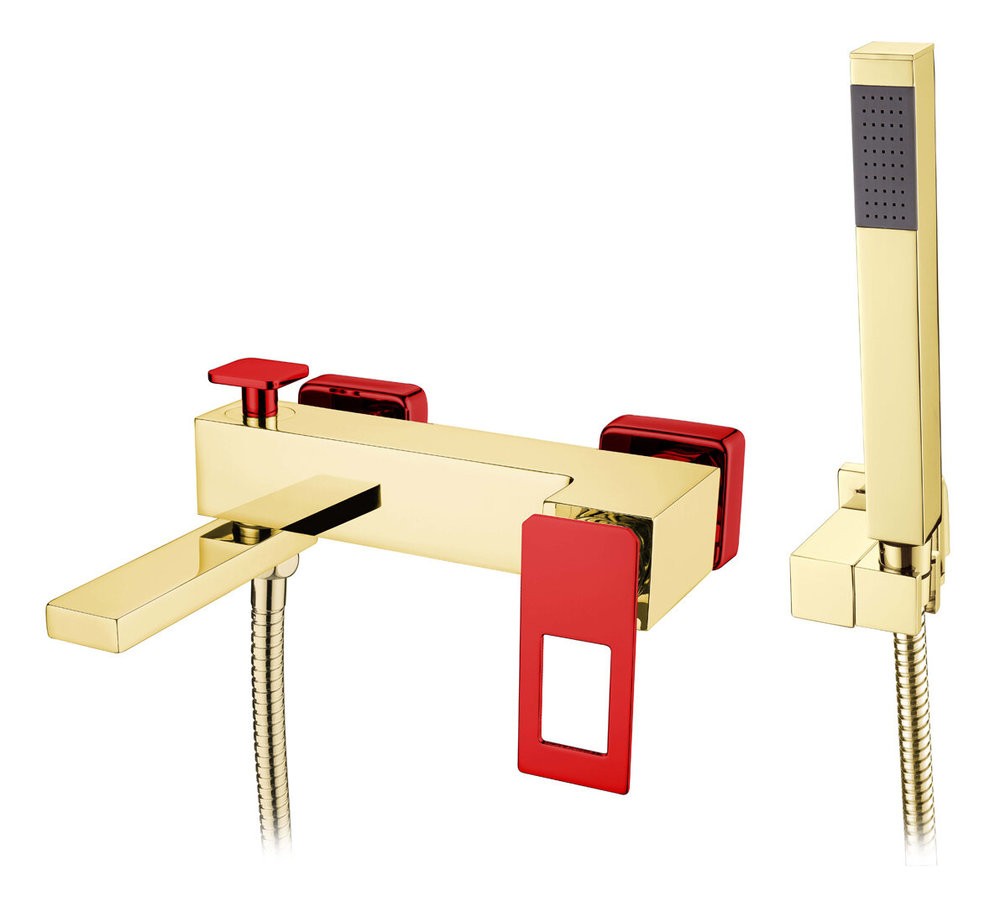 Смеситель Boheme Q для ванны, с душевым гарнитуром, золото, красный, 143-GR