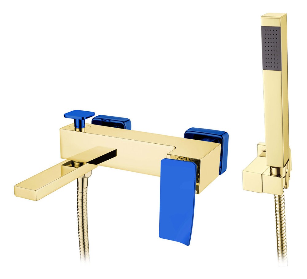 Смеситель Boheme Q для ванны, с душевым гарнитуром, золото, синий, 143-GUV.2