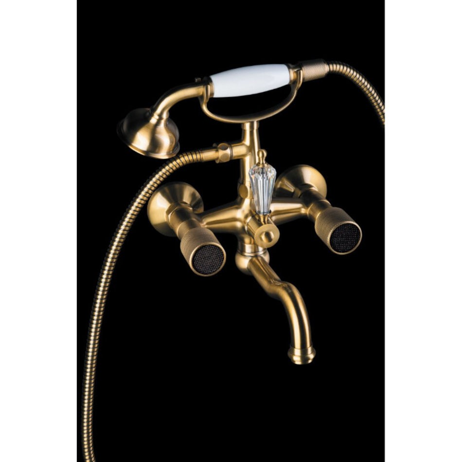 Смеситель Boheme Royal Crystal для ванны и душа, с душевым гарнитуром, цвет бронза, с черными кристаллами, 313-Royal/CRST black