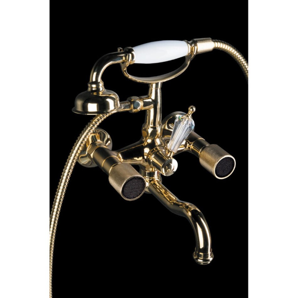 Смеситель Boheme Royal Crystal для ванны и душа, с душевым гарнитуром, цвет золото, с черными кристаллами, 293-Royal/CRST black