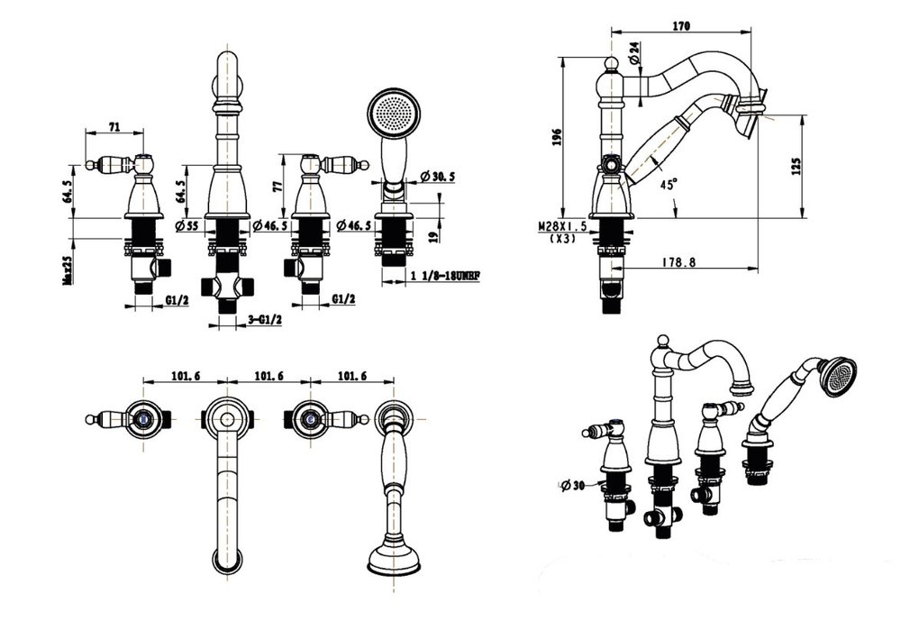 Смеситель Boheme Royal Crystal для ванны на 4 отверстия, хром, 396-Royal/CRST