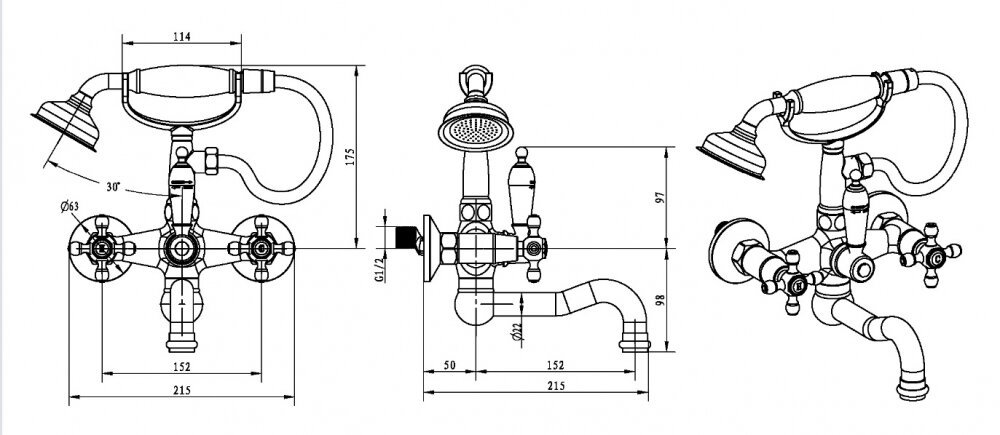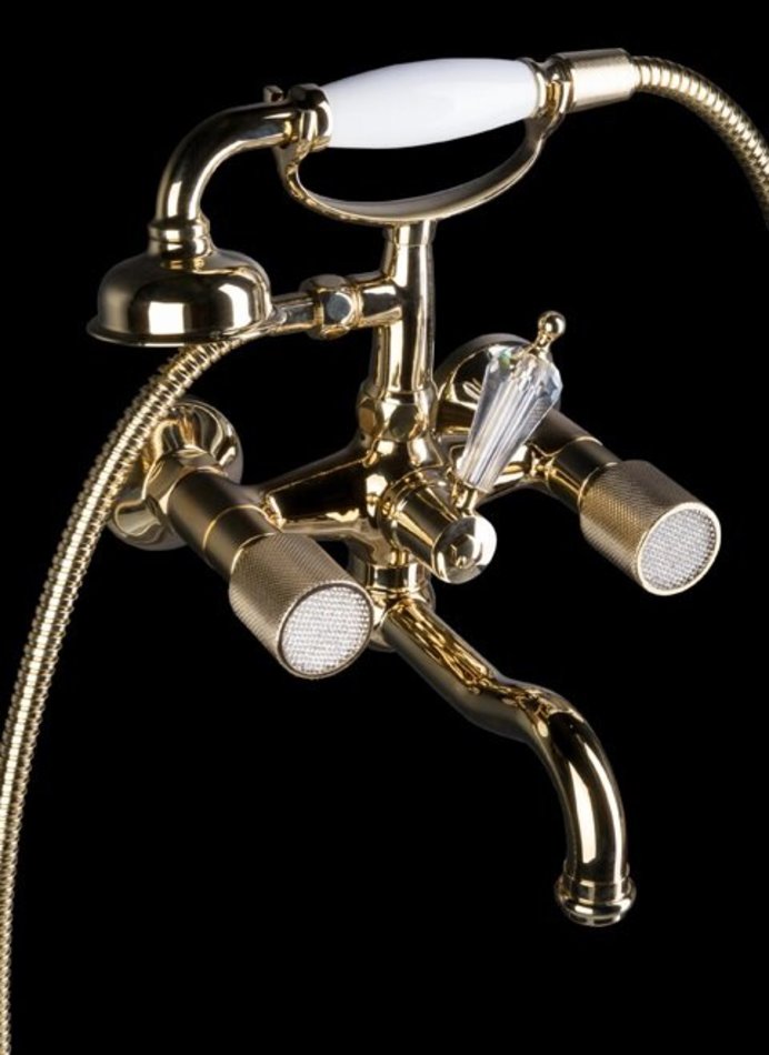 Смеситель Boheme Royal Crystal для ванны, с душевым гарнитуром, золото, 293-Royal/CRST