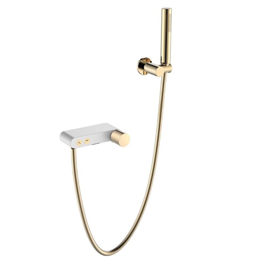 Смеситель Boheme Stick для ванны и душа, с душевым гарнитуром, White touch gold, 123-WG.2