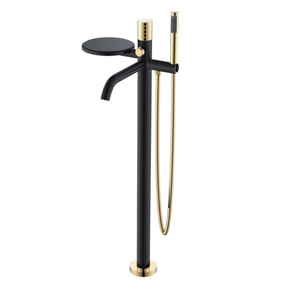 Смеситель Boheme Stick для ванны и душа, с душевым гарнитуром, Black diamond gold, 129-BG