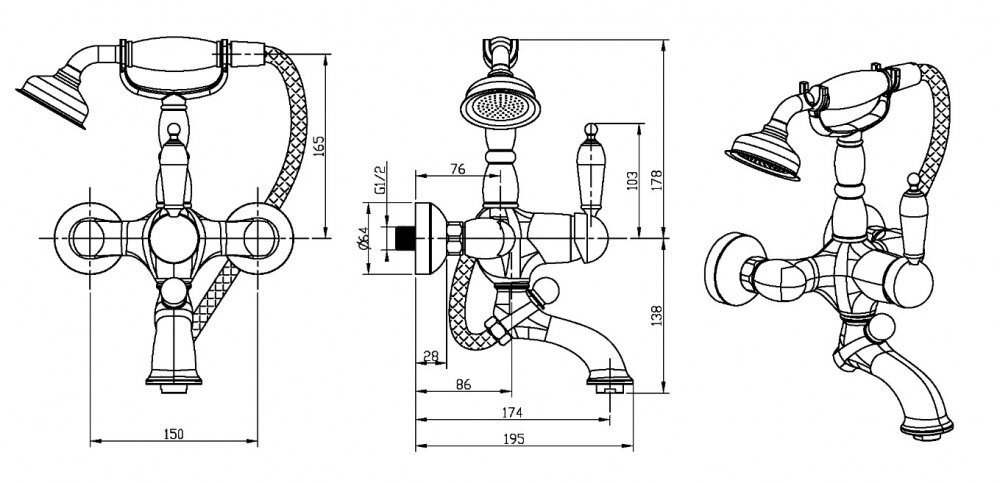 Смеситель Boheme Tradizionale 243 Nero для ванны, с душевым гарнитуром, хром