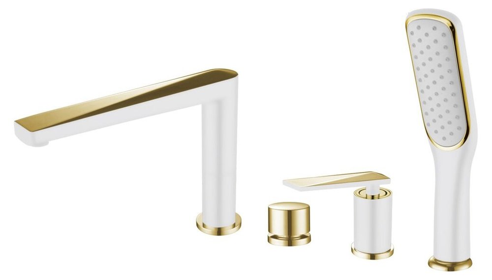 Смеситель Boheme Venturo 380-W для ванны на 4 отверстия, белый, золото