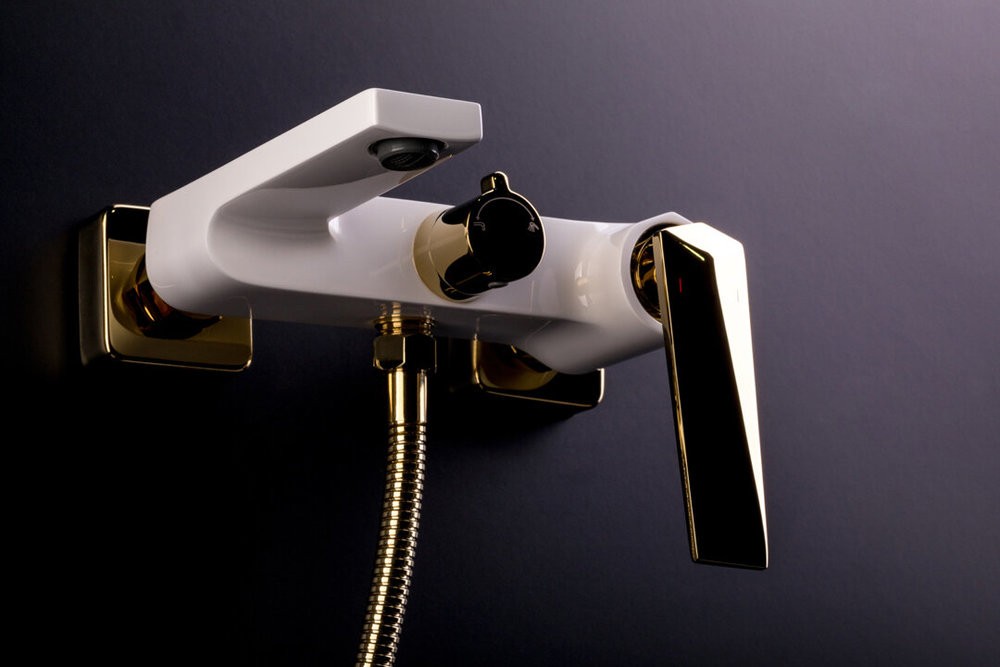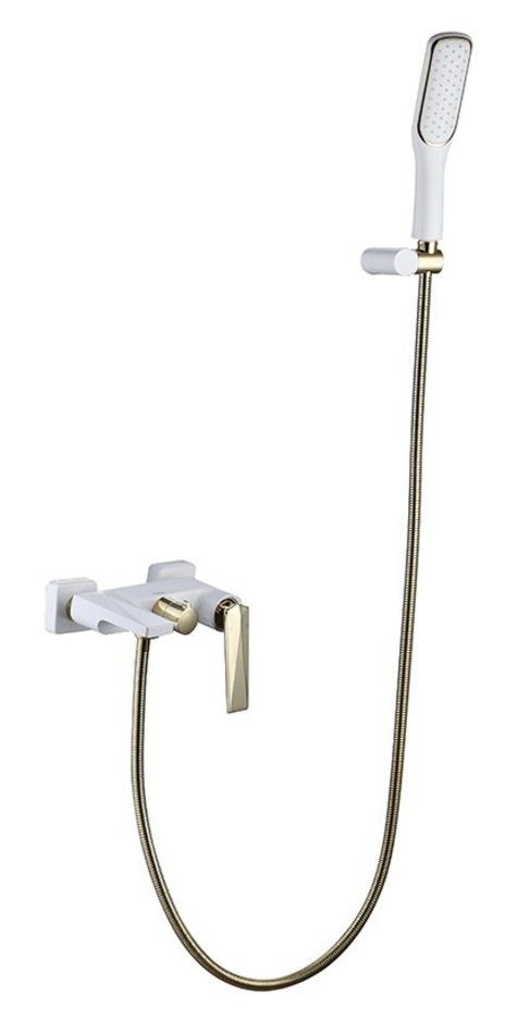 Смеситель Boheme Venturo 383-W для ванны, с душевым гарнитуром, белый, золото
