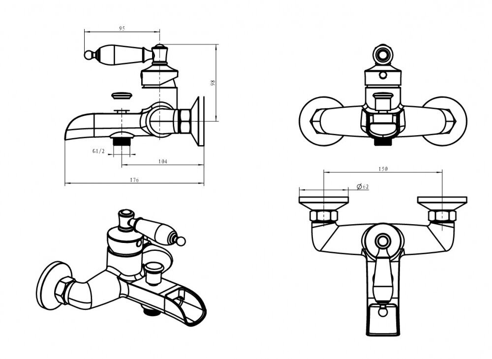 - Смеситель для ванны с душевым гарнитуром