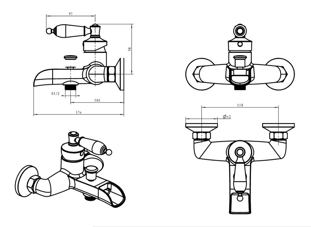 Смеситель Boheme Vogue 223-CRST Crystal для ванны, хром