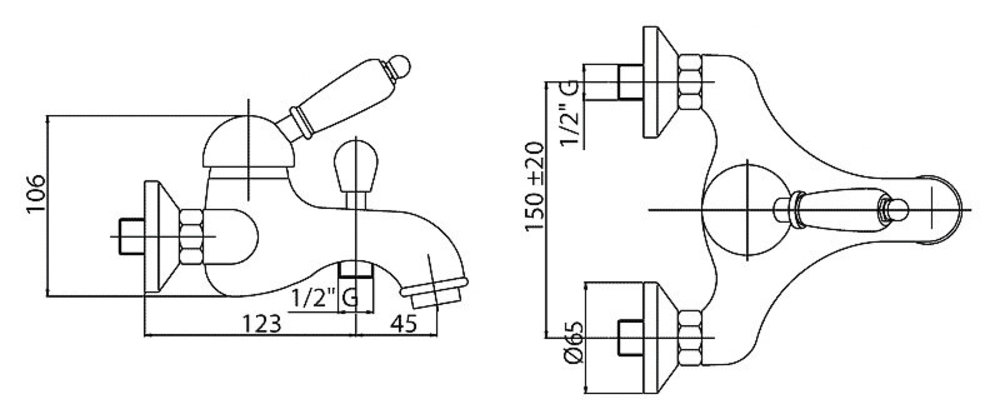 Смеситель Cezares ELITE-VM-02-Bi для ванны и душа, бронза, ручка белая