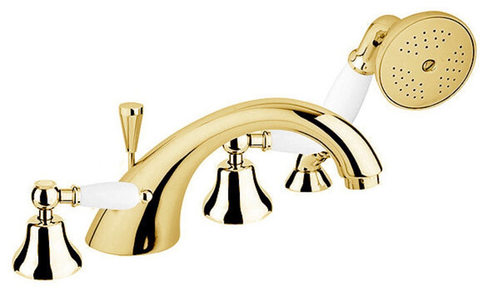 Смеситель Cezares FIRST-BVD-03/24-Bi для ванны, золото 24 карат, ручки белые