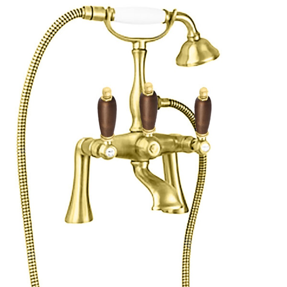 Смеситель Cezares First PBV-03/24-Nc цвет золото 24 карат, ручки орех