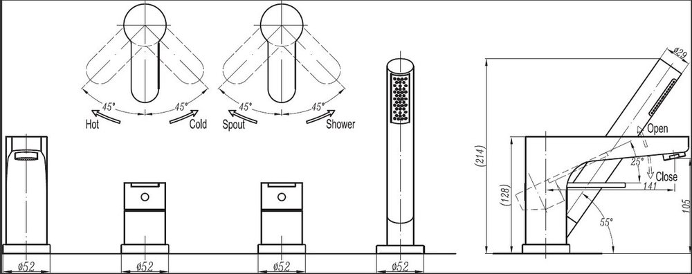 Смеситель Cezares Laconico LACONICO-C-BVDM-01 на борт ванны, хром