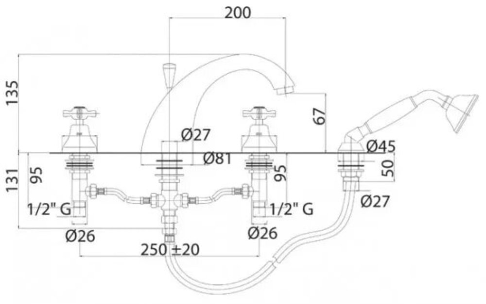 Смеситель Cezares LORD-BVD-02-M для ванны, бронза, ручка ручного душа бронза