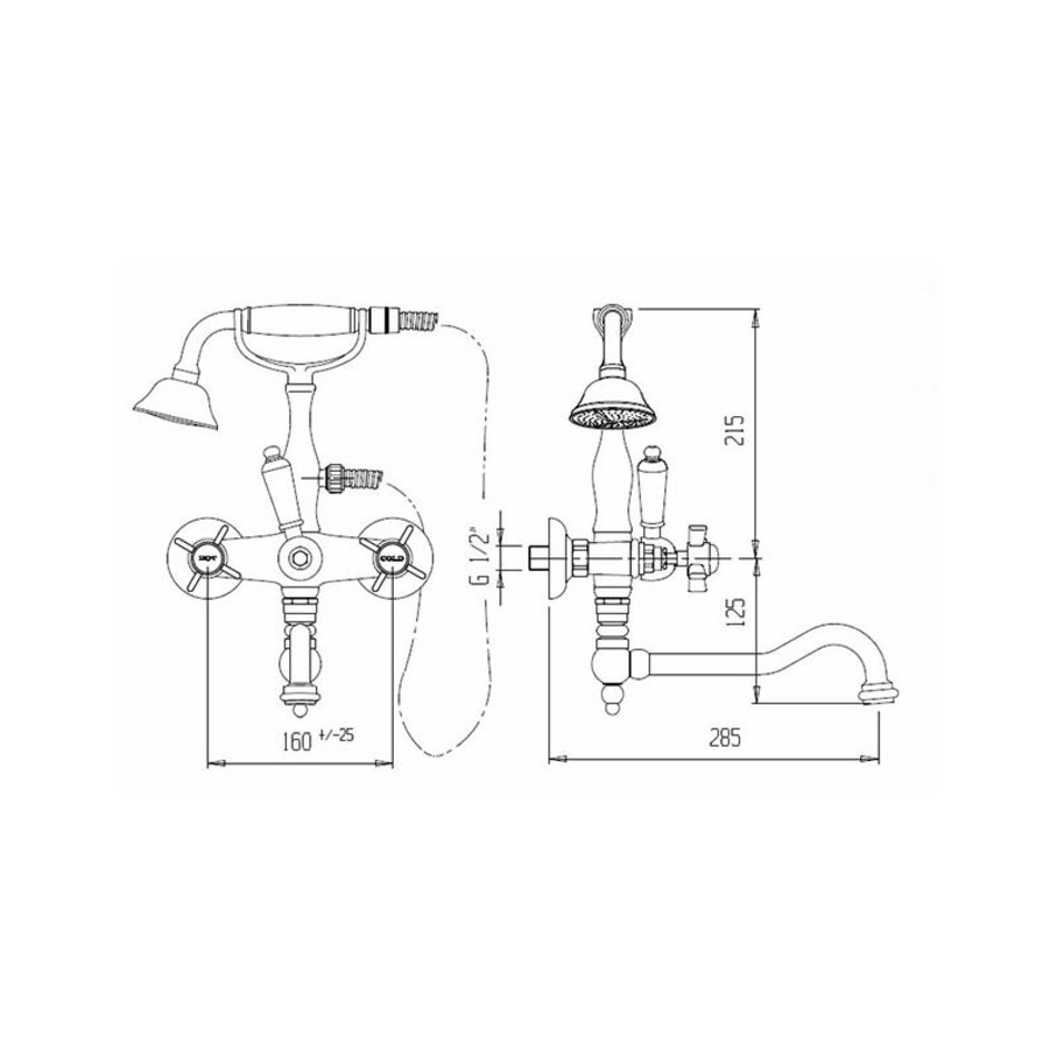 Смеситель Cezares Nostalgia NOSTALGIA-VDF-01-M для ванны, с поворотным изливом с ручным душем, шлангом 150 см, цвет хром