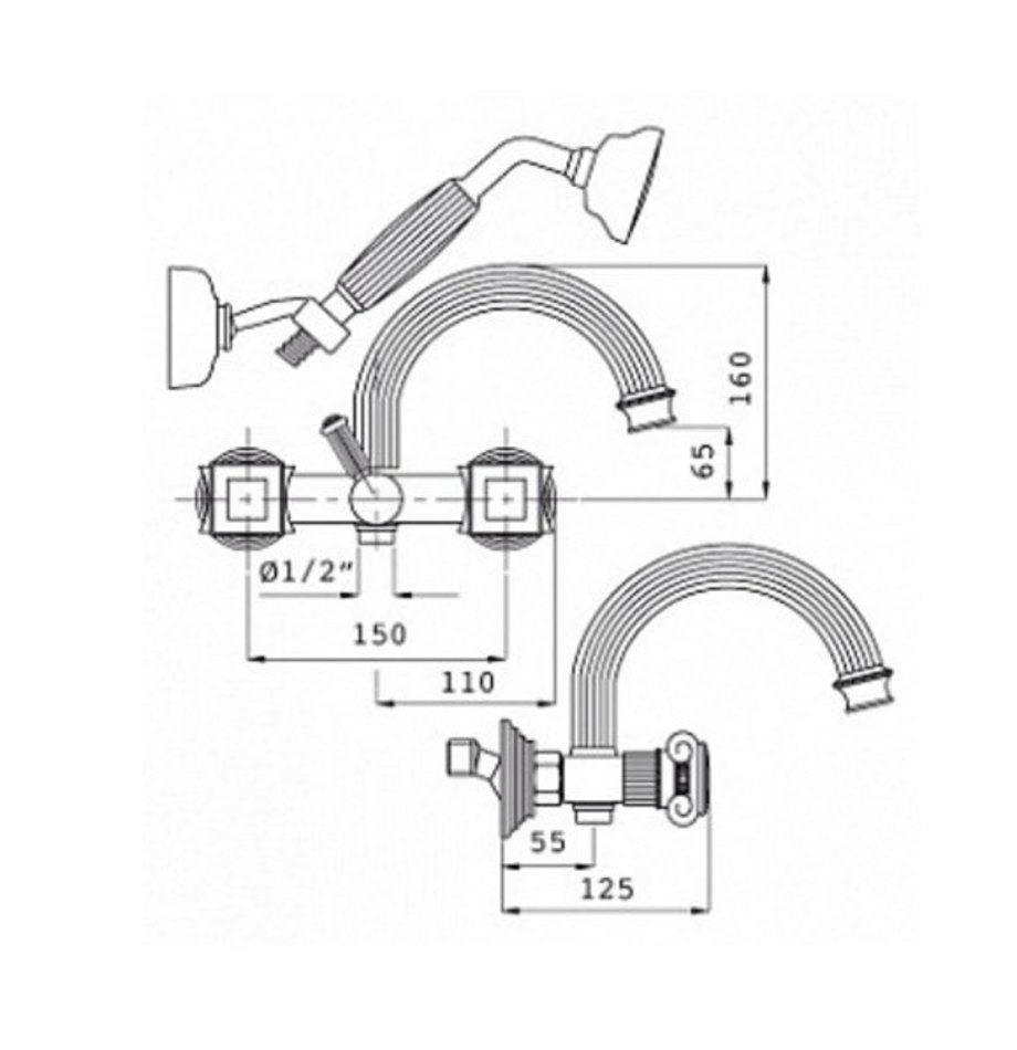 Смеситель Cezares Olimp Olimp-VD-02-O VD-02-O цвет бронза, ручки квадратные металл