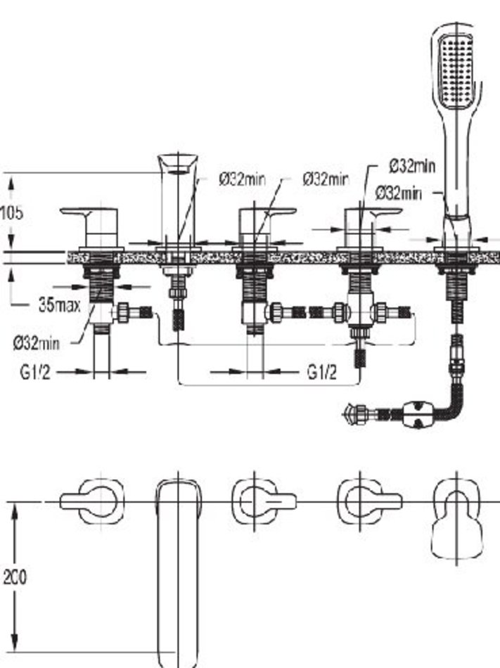 Смеситель Cezares Tesoro TESORO-F-BVD5-01 для ванны/душа