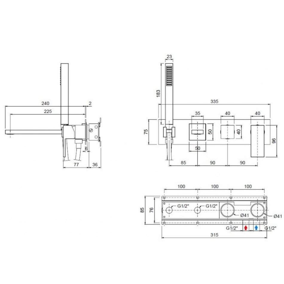 - Смеситель для ванны и душа однорычажный, с ручным душем