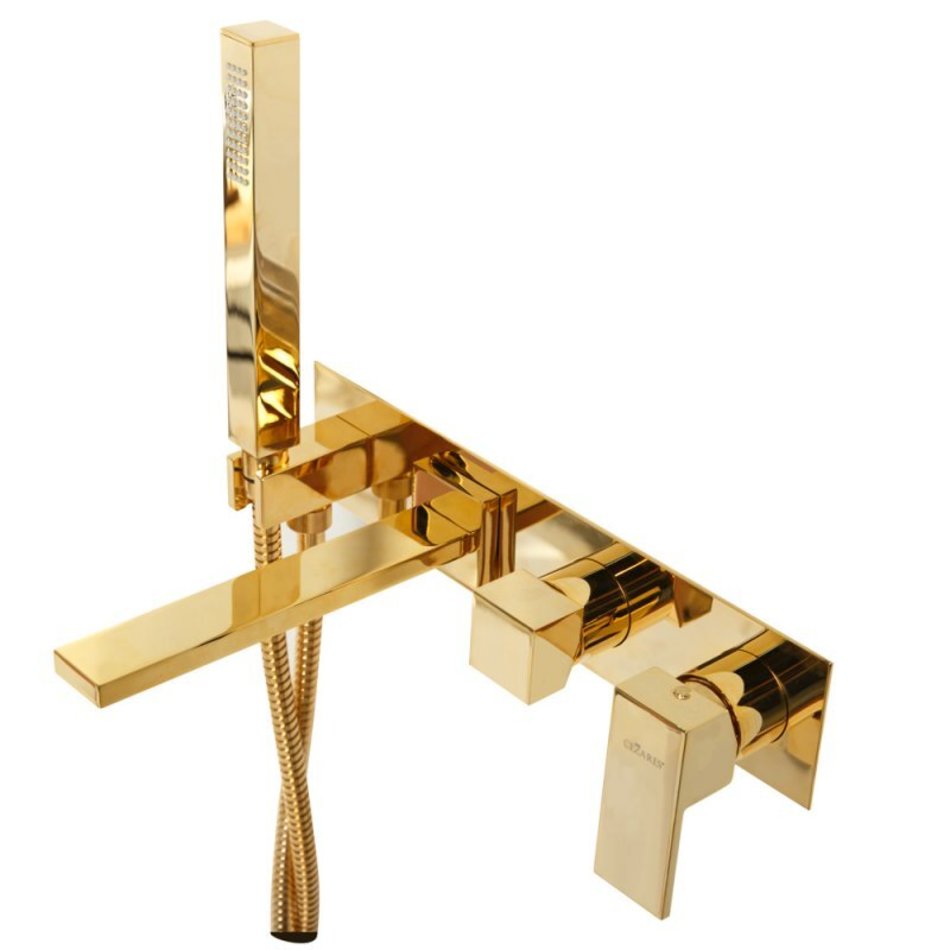 Смеситель Cezares Unika UNIKA-VDM2-03/24 для ванны и душа, с гарнитуром, золото 24 карата