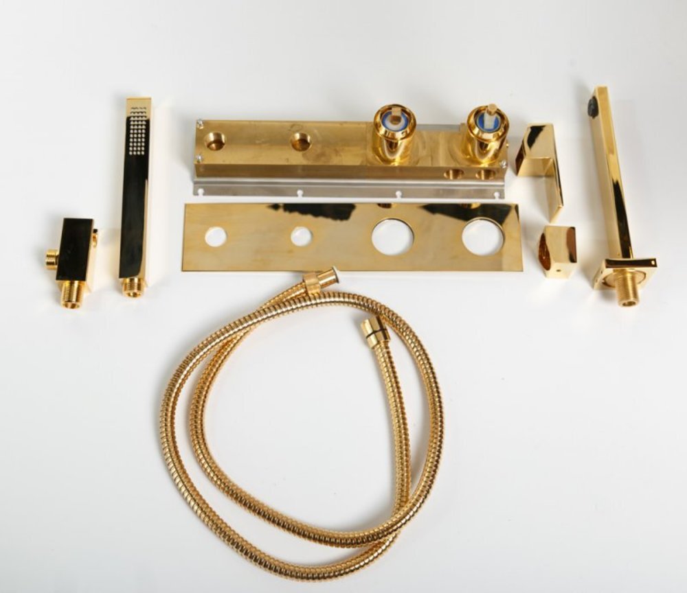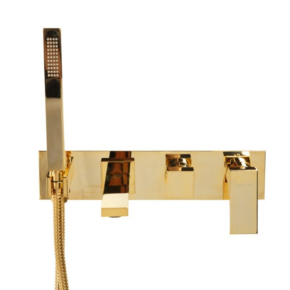 Смеситель Cezares Unika для ванны и душа, с гарнитуром, золото 24 карата, UNIKA-VDM2-03/24