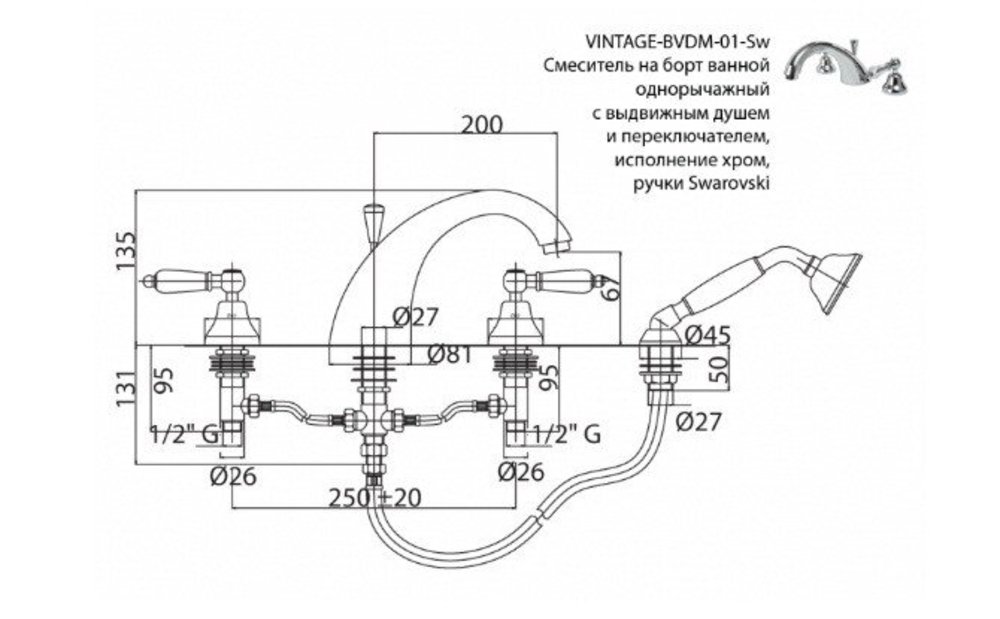 Смеситель Cezares VINTAGE-BVDM-02-Sw для ванны, бронза, ручки Swarovski