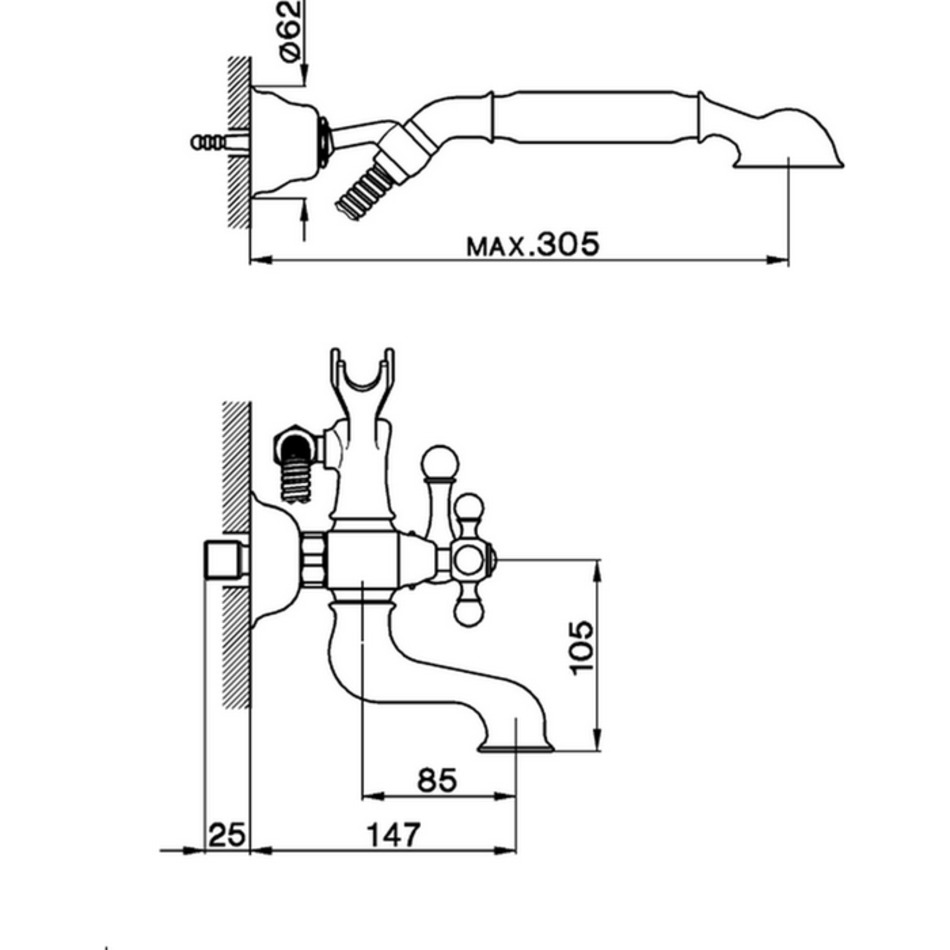 Смеситель Cisal Arcana AC00012021 настенный для ванны/душа с ручной лейкой, держателем и шлангом, хром