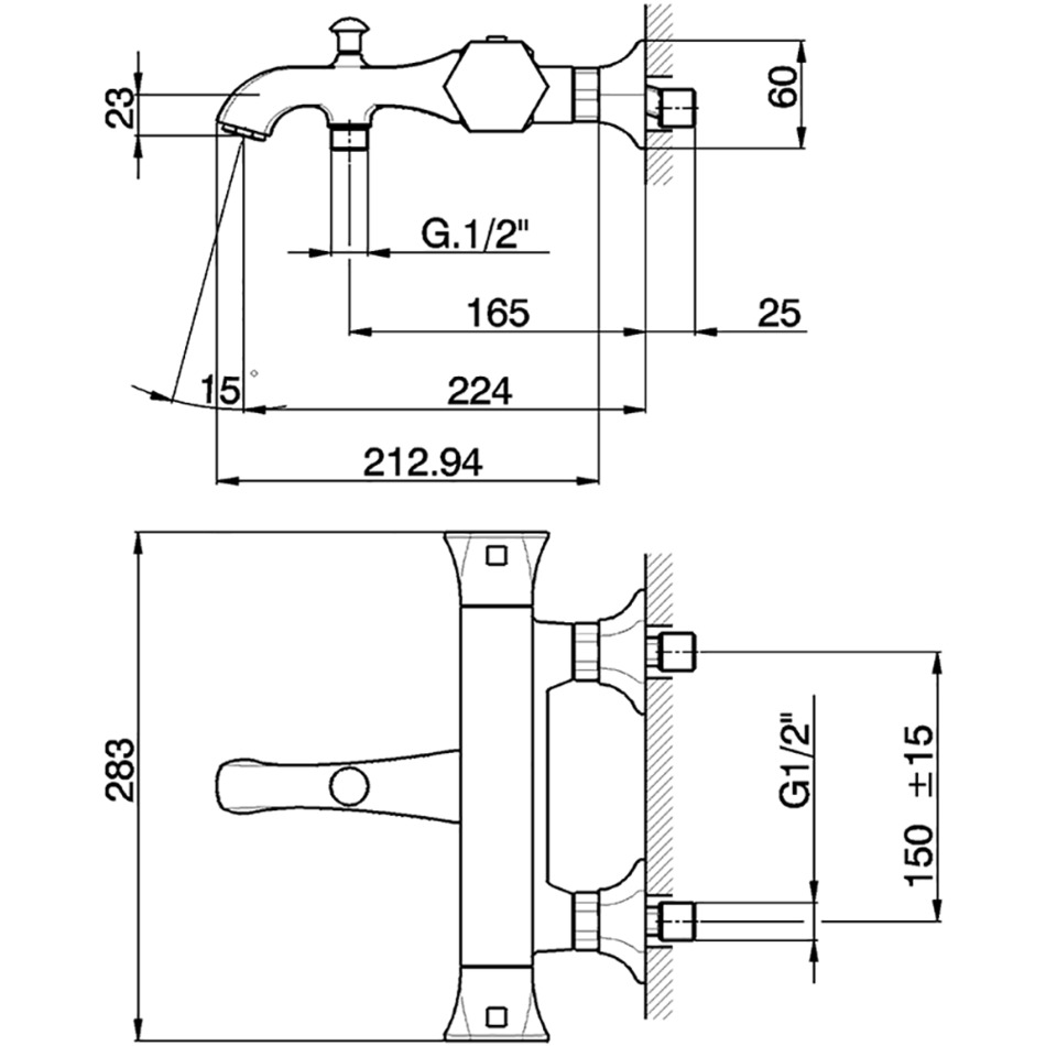 Смеситель Cisal Cherie CET2701024 термостатический настенный для ванны/душа, золото