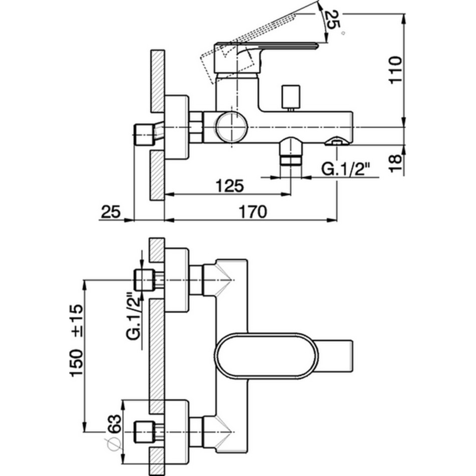 Смеситель Cisal LineaViva LV00013021 однорычажный настенный для ванны/душа, хром