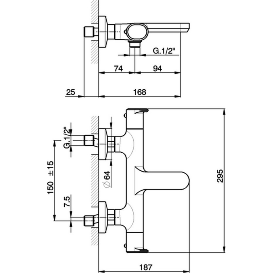 Смеситель Cisal LineaViva термостатический настенный для ванны/душа, цвет хром, LVT2101021