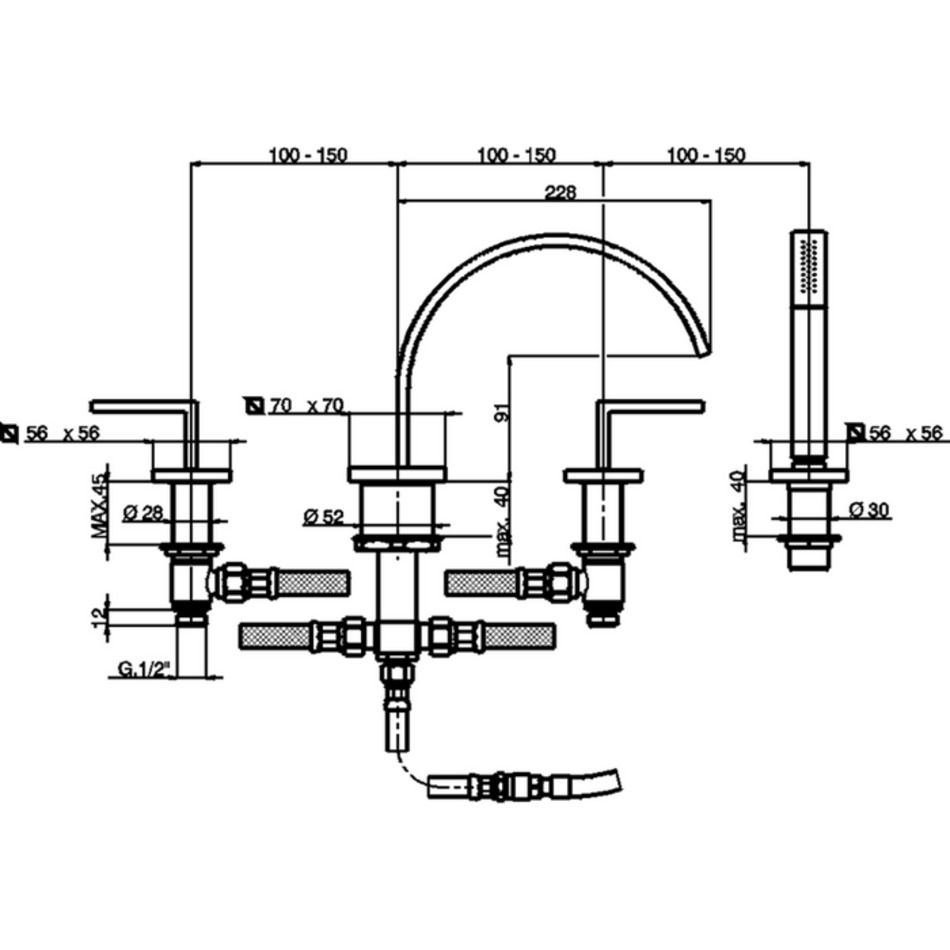 Смеситель Cisal Wave WA00026121 на борт ванны на 4 отверстия,излив 228 мм, цвет хром