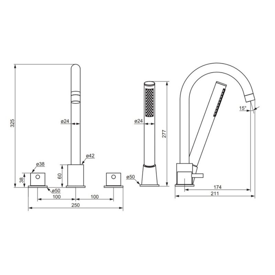 - Размер ручного душа: 277х24х24 мм