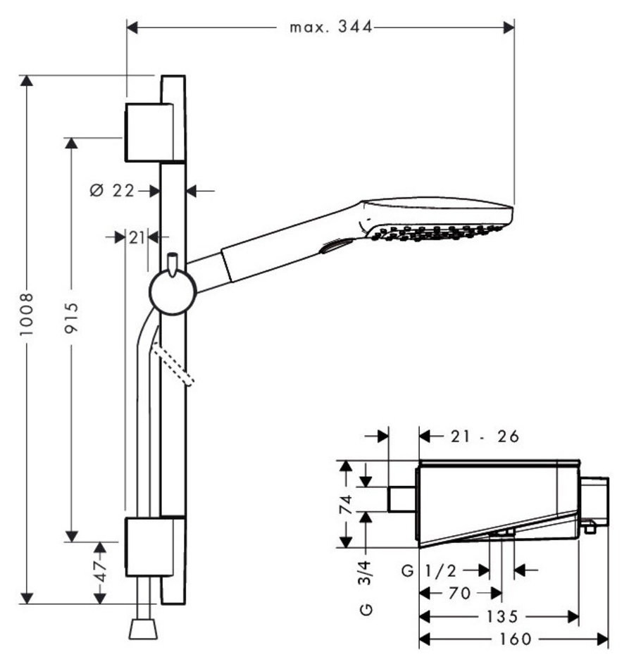 - Душевая штанга 65 см Hansgrohe Unica'S Puro